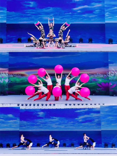 接下来表演的节目,是来自南京育仁瑜伽学院师生们带来的爵士舞《摩登时代》,舞台上的爵士舞,原始、热情、奔放、急促又富有动感和节奏,表达的是火热的风情。
