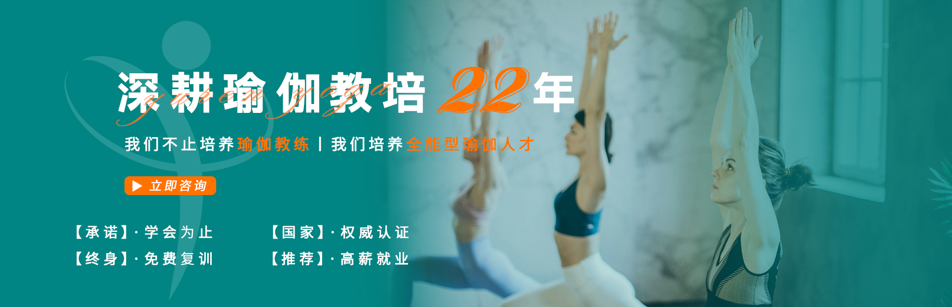 综合素养:1.瑜伽商卡肠道清洁法实践、2.上好会所必备的第一课——瑜伽沙龙课、3.会员课实战演习、4.健身瑜伽竞赛体位法赏析、5.瑜伽素食文化与用餐仪式、6.隆重的毕业典礼与就业辅导